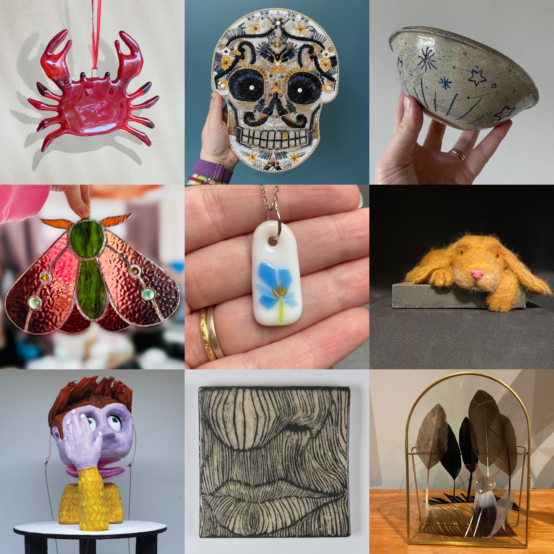 In my home studio I’m especially focused on fused glass, stained glass and mosaics, but I’m always exploring new things to make with my hands. My curiosity has taken me to automata, whittling, paper crafts, crochet, needle felting, polymer clays and ceramics.